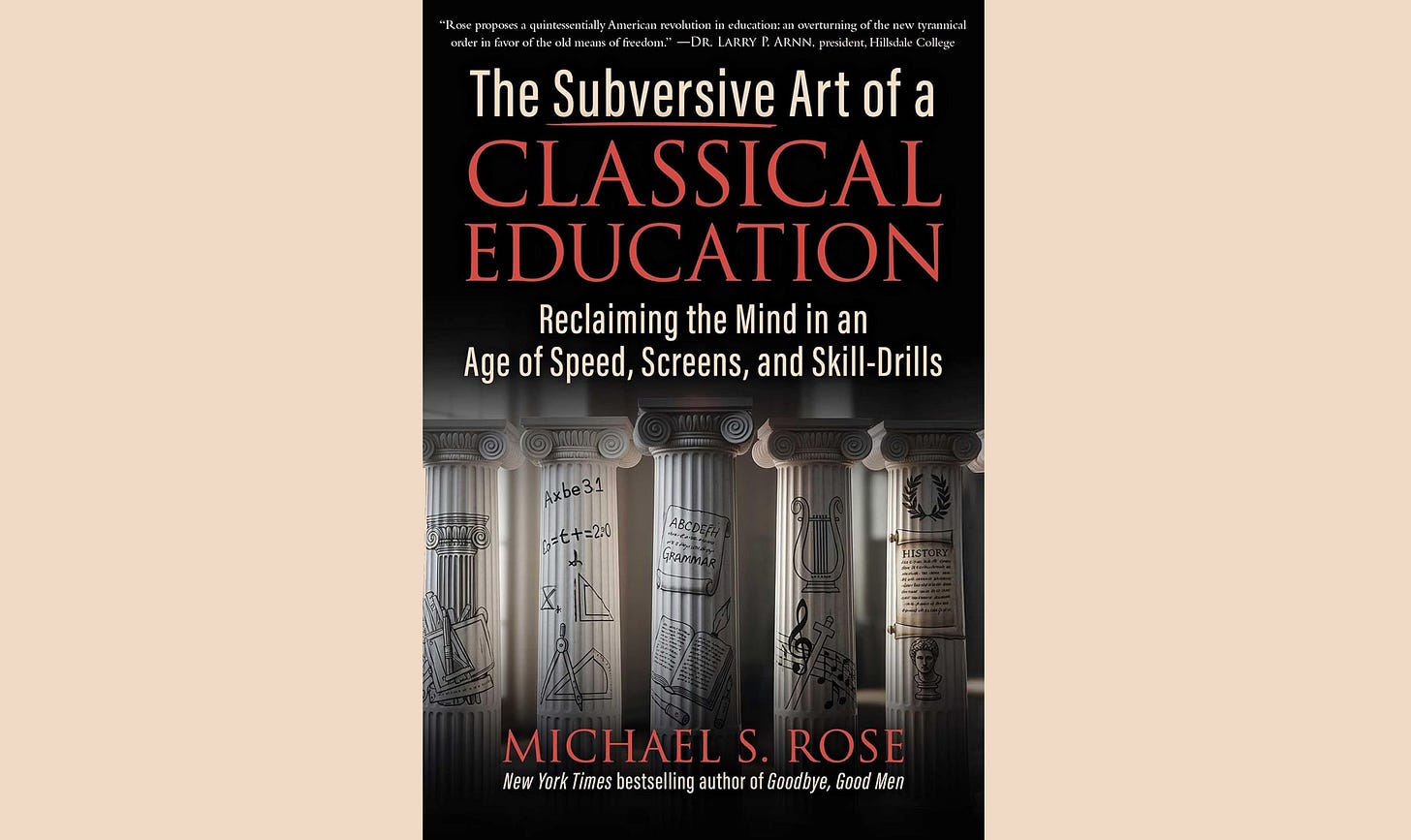Michael S. Rose’s new book, The Subversive Art of a Classical Education: Reclaiming the Mind in an Age of Speed, Screens, and Skill-Drills, is the most interesting sort of paradox: the sort that would be most beneficial to those least likely to recognize its value. Beautifully written and skillfully argued, the book is an oasis to parents and educators already well-aware of the dire state of education in America, but the very language that makes it so impactful to the initiated may make it significantly less accessible to those who most need to hear what Rose has to say.